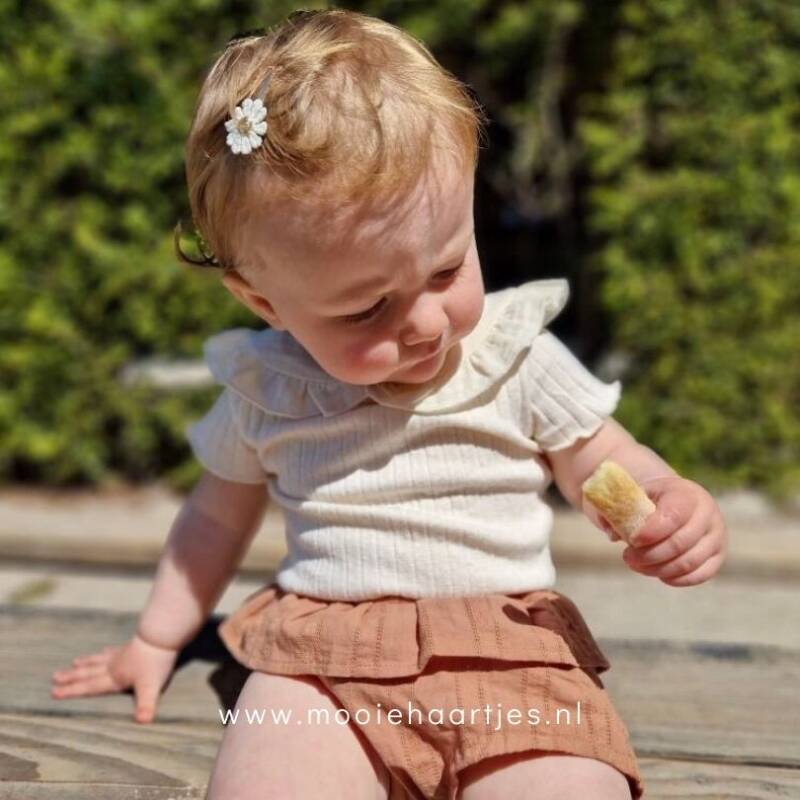 Heeft jouw kleintje al wat meer haar en ben je op zoek naar zachte en veilige elastiekjes? Ontdek dan onze kleine haarelastiekjes. Ze zijn superzacht en bevatten geen metaal, zodat het haar niet beschadigt. Kies uit elastiekjes met schattige applicaties zoals madeliefjes, roosjes en strikjes, voor een extra lieve look!