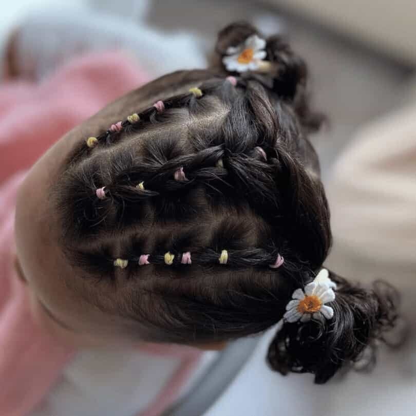 Zijn de haartjes van je kindje dun of glad en glijden staartjes met zachte haarelastiekjes daardoor snel uit? Dan hebben wij een handige oplossing! Zet het haar eerst vast met een dun rubberen antislip haarelastiekje en doe daarna het zachte elastiekje eroverheen, kies bijvoorbeeld eentje met een madeliefje. Zo blijft het staartje perfect zitten én ziet het staartje of de vlechtjes er super schattig uit.