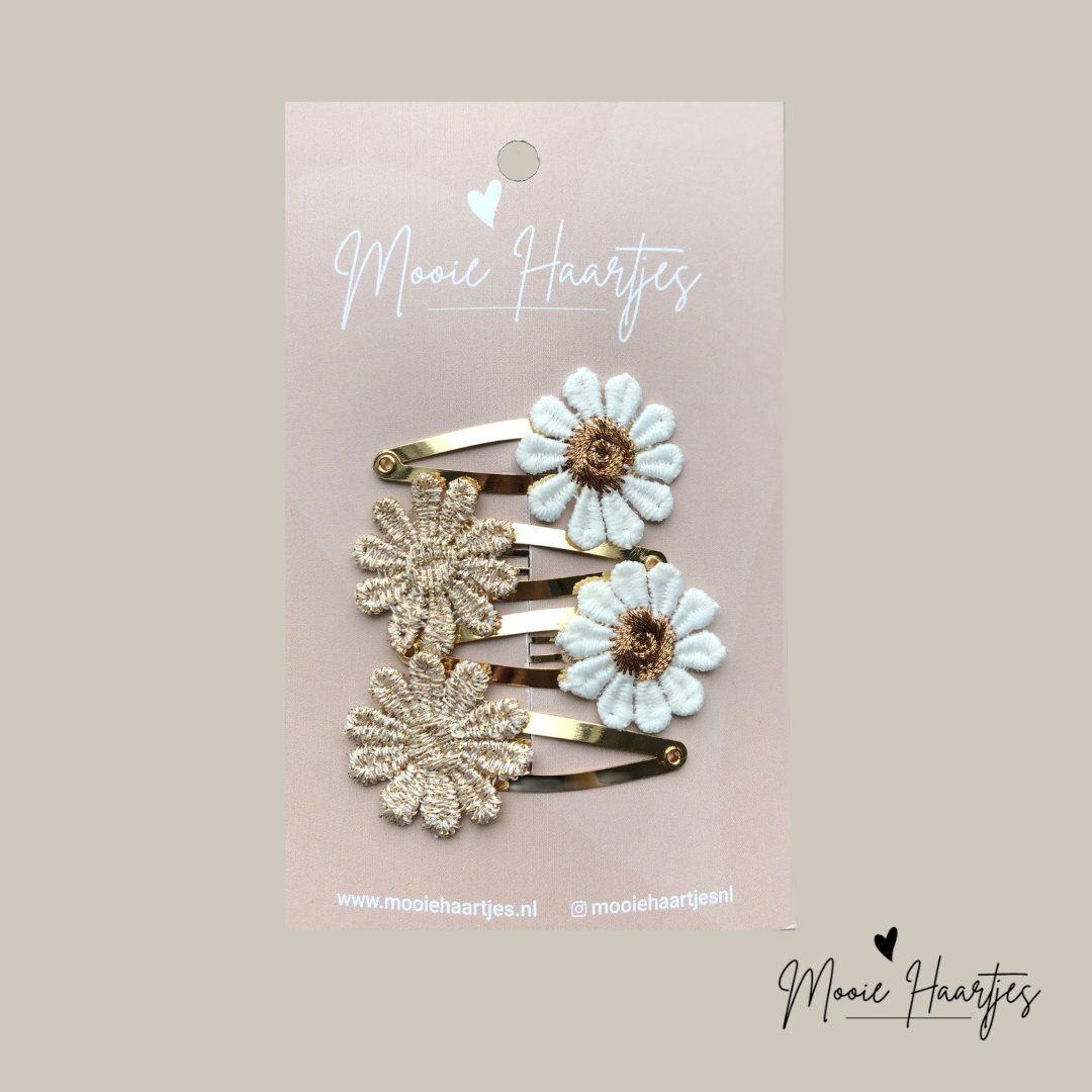 Deze haarspeldjes met madeliefjes zijn gemaakt voor peuter meisjes vanaf ongeveer 2 jaar.