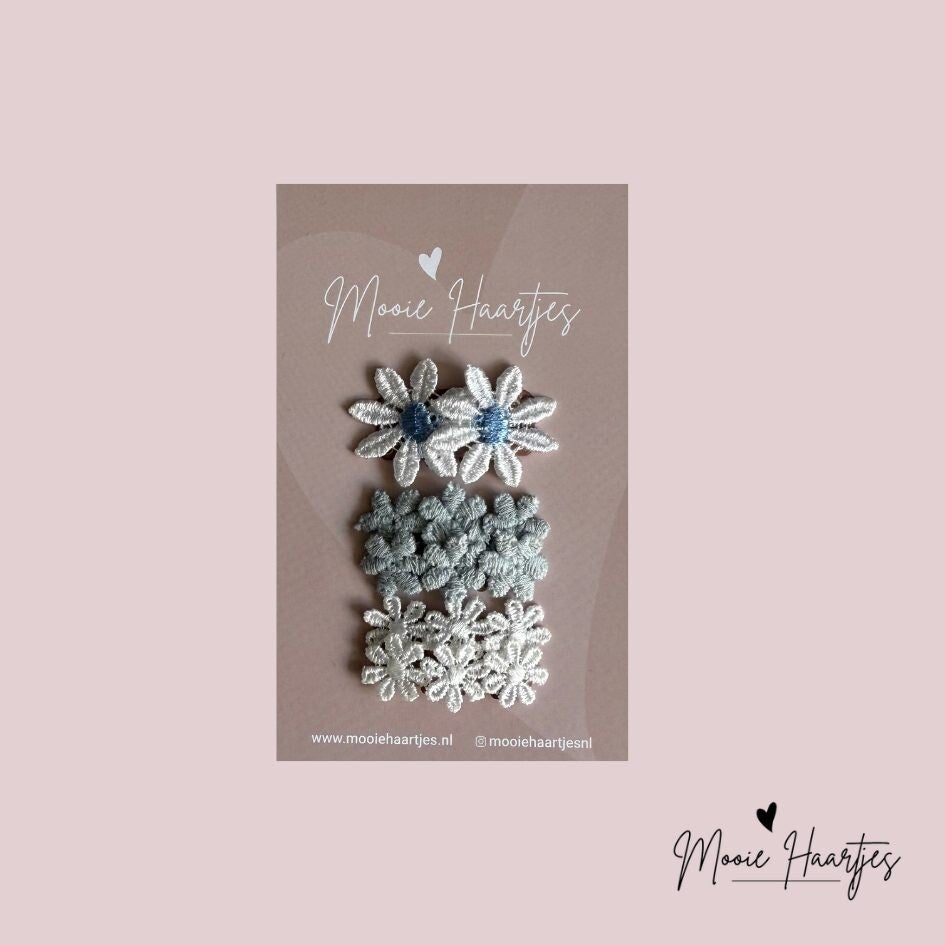 Kleuren: wit, blauwBevestiging: Antislip speldje, blijft goed zitten in fijn haar