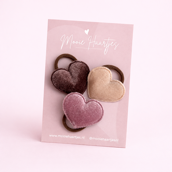 1. Kleine haarelastiekjes | Hartjes roze/ beige/ bruin